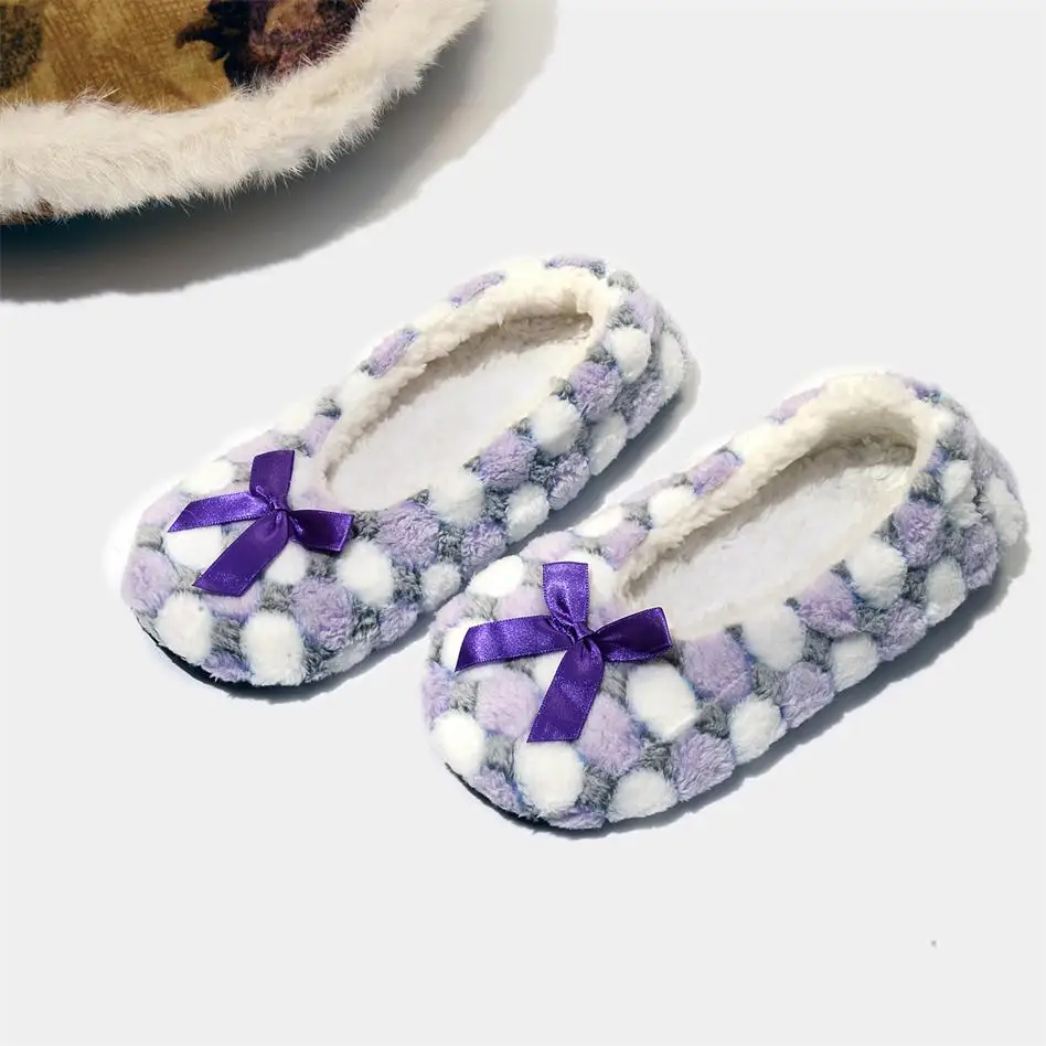 .image for FRALOSHA Warm At Home woman Slippers Cotton Shoes Plush Female Floor Shoes Non-slip Indoor Bow tie