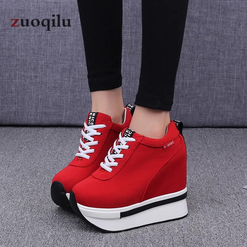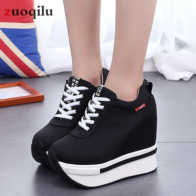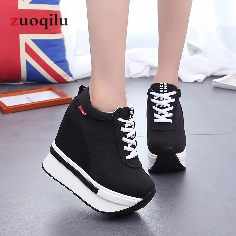 2019 women vulcanized shoes heels platform shoes canvas ladies casual shoes height increasing shoes woman autumn shoes