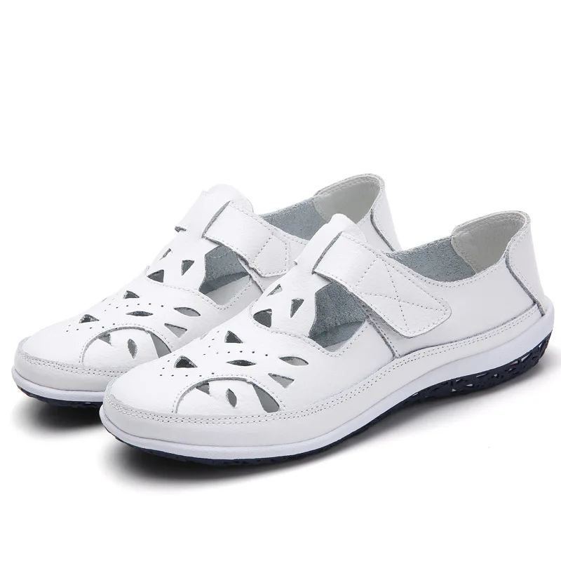 Women Sandals Plus Size Split Leather Soft Bottom 2019 Summer Flat Shoes Woman Leisure Sandal Cut-out Mothers Sandalias SH060401